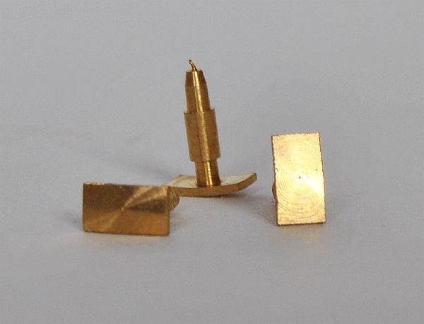 Soustružené mosazné nárazníky ČSD, hranatý tvar. Uvedená cena je za 1 kus!