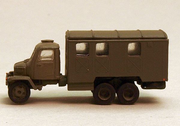 Hotový model nákladního vozidla Praga V3S, skříňová verze PAD. Model je kompletně sestavený, barvený, s lehkou patinou.