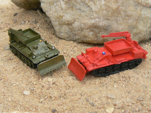 Sestavený a nabarvený model vyprošťovacího tanku VT55 v drážní verzi.